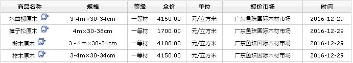 2016年12月29日國(guó)產(chǎn)原木價(jià)格行情
