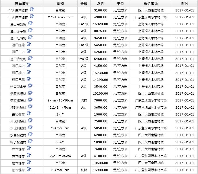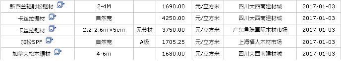 2017年1月(1\2\3日)進(jìn)口鋸材價格行情