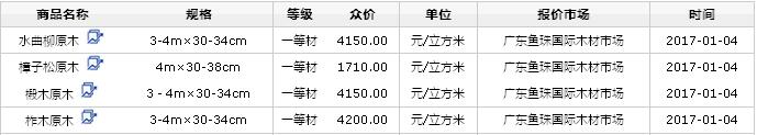 2017年1月4日國產(chǎn)原木價(jià)格行情