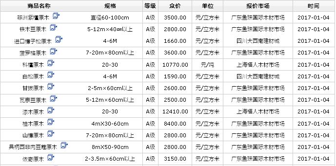 2017年1月4日進(jìn)口原木價(jià)格行情