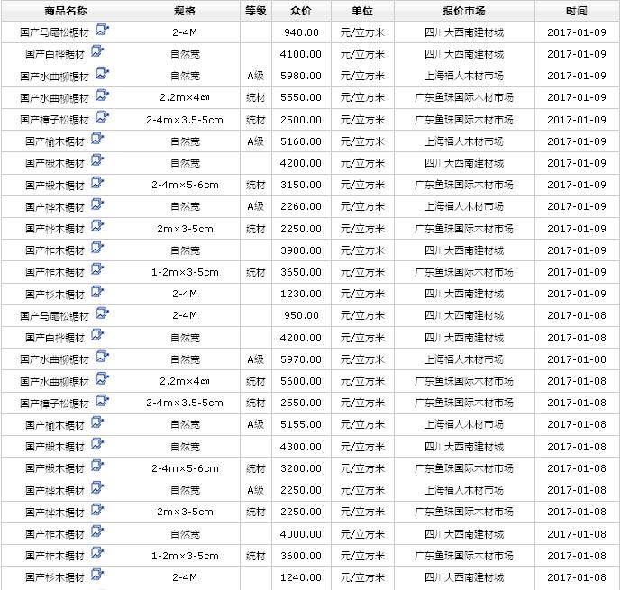 2017年1月(7/8/9日)國產(chǎn)鋸材價(jià)格行情