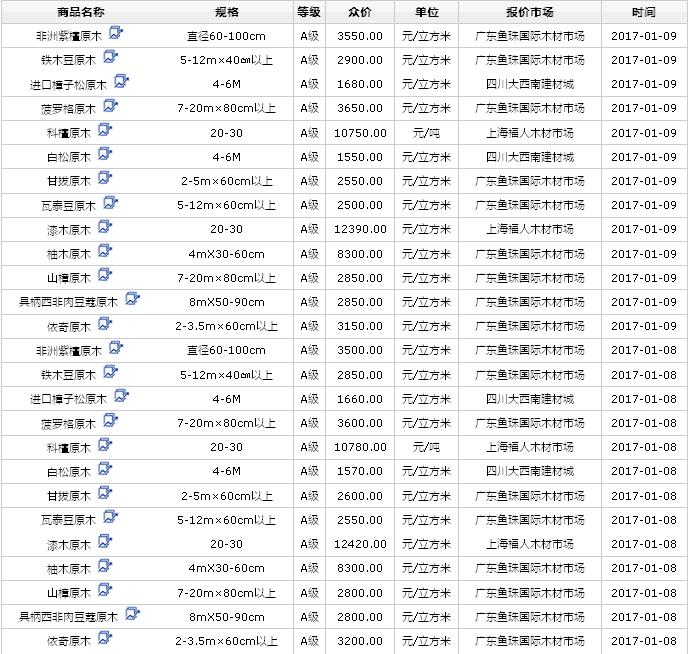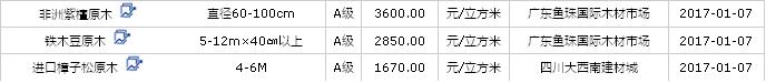 2017年1月(7/8/9日)進(jìn)口原木價(jià)格行情