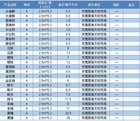 木材市場聯(lián)盟新動(dòng)態(tài):另外據(jù)河北大城的商家透露,近段時(shí)間越南香枝木(俗稱越南黃花梨)在反腐倡廉政策下,家具料市場交易情緒也十分低落,行情不佳。不過價(jià)格方面,因?yàn)椴牧系南∪毙?,木材商倒很少有調(diào)價(jià)意愿,市場價(jià)格基本走穩(wěn)。