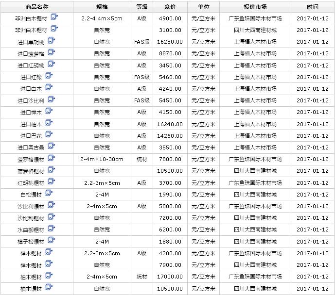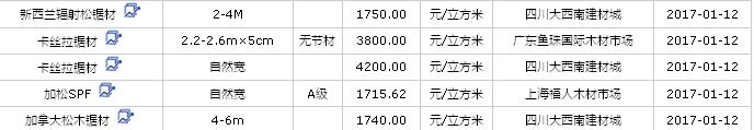 2017年1月12日進(jìn)口鋸材價(jià)格行情