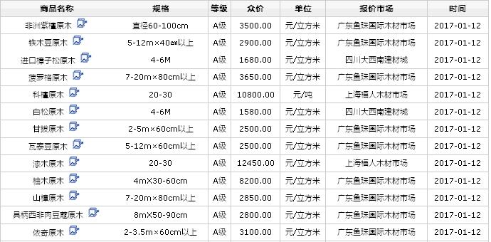 2017年1月12日進(jìn)口原木價(jià)格行情