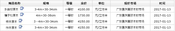 2017年1月13日國(guó)產(chǎn)原木價(jià)格行情