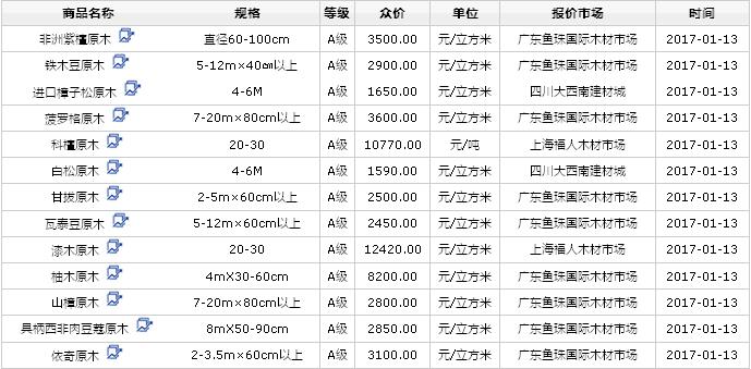 2017年1月13日進(jìn)口原木價(jià)格行情