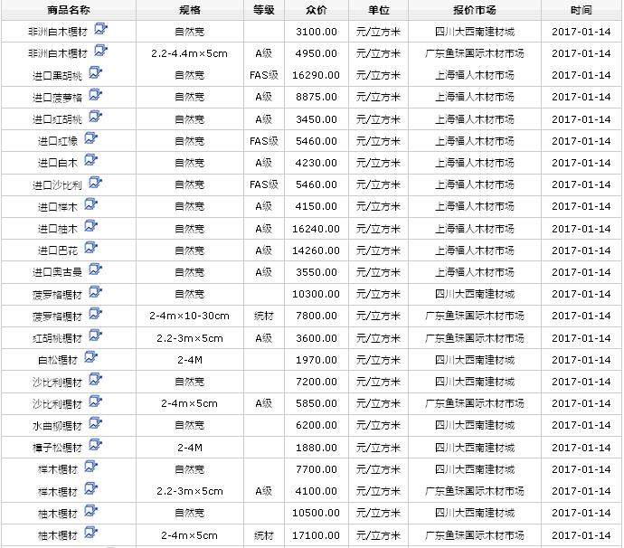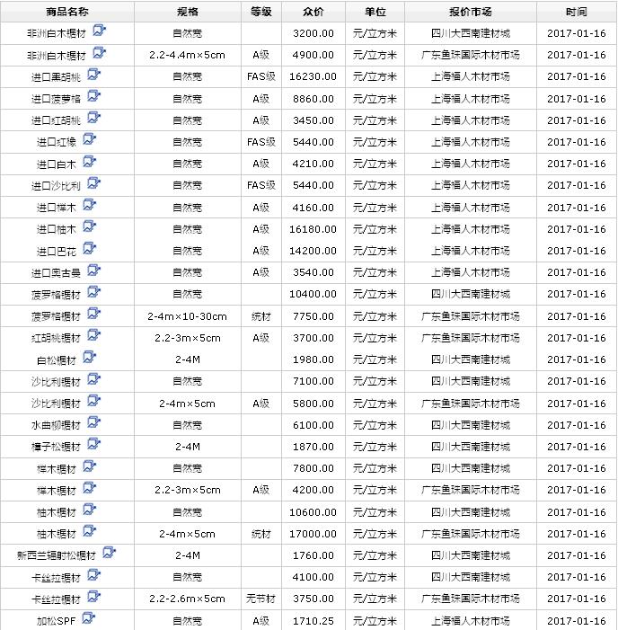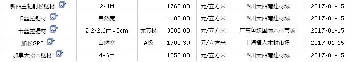 2017年1月(14/15/16日)進口鋸材價格行情