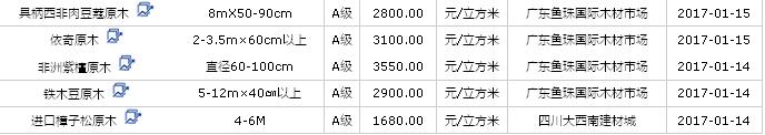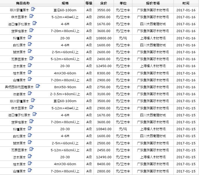 2017年1月(14/15/16日)進(jìn)口原木價(jià)格行情