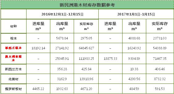 新民洲港近年來木材進口量飛速增長,近期木材庫存主要有澳大利亞原木、新西蘭原木、進口桉木等主力品種,詳細信息請見下表: