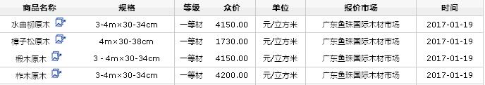 2017年1月19日國產(chǎn)原木價(jià)格行情