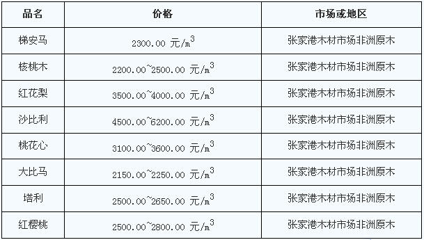 2014年10月30日張家港木材市場非洲原木價(jià)格行情