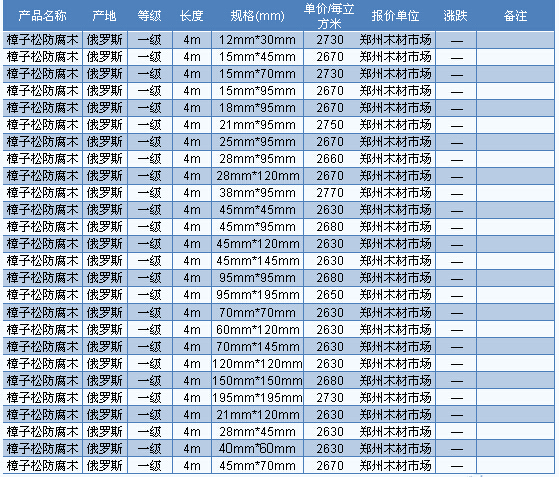 2014年10月31日鄭州木材市場防腐木價格