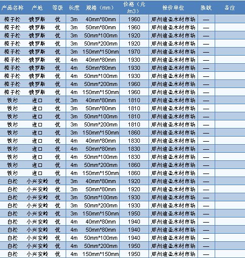 木材市場聯(lián)盟新動態(tài):據(jù)調(diào)查獲悉,2014年滿洲里、綏芬河陸運口岸地區(qū),俄羅斯材出貨量非常慢,價格基本處于倒掛狀態(tài)。木材商家苦不堪言,在此背景下,10月份,俄羅斯木材供應(yīng)商也開始下調(diào)價格,跌幅在在5美元/立方米,而國內(nèi)市場售價也順勢下滑,跌幅40元/立方米。目前俄羅斯落葉松30cm以上,太倉港報1250元/立方米,寧波港口報1220元/立方米;俄羅斯白松原木直徑30cm以上、太倉港報1260元/立方米,嵐山港報1220元/立方米。