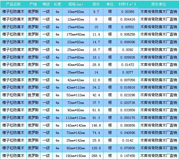 2018年10月28日鄭州木材市場(chǎng)防腐木價(jià)格行情