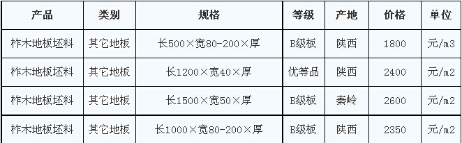 2014年11月4日柞木地板坯料價格行情