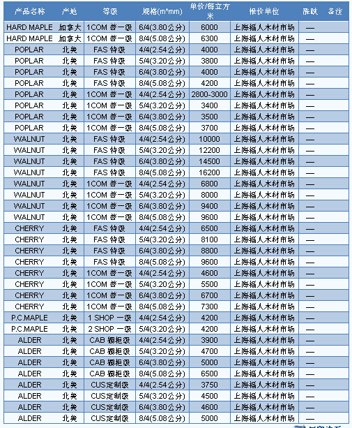 從近期的市場表現(xiàn)來看,北美紅橡、白栓等材種依舊是主流材種,銷量相對較好。目前廣東市場白栓長2.15—3.05m、厚1—2寸、FAS級報價6000—7200元/立方米;白橡長2.15—3.05m、厚1—2寸、FAS級報價8200—13000元/立方米。