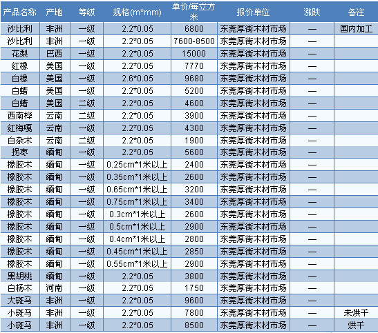 卡絲拉貨源持續(xù)緊缺。據(jù) 商家反映,經(jīng)過(guò)長(zhǎng)時(shí)間的消耗,加之市場(chǎng)缺乏新貨補(bǔ)充,目前卡絲拉貨源持續(xù)緊缺。另外,商家同時(shí)反映,以前卡絲拉主要用于制作木門居多,而家具方面涉及相對(duì) 較少,不過(guò)現(xiàn)在情況有所改變了,有不少家具商家開始將卡絲拉用于家具方面,卡絲拉也開始由之前的木門用材為主轉(zhuǎn)變成家具用材為主。目前廣東市場(chǎng)卡絲拉長(zhǎng)2.2—2.6m、厚5cm、A級(jí)報(bào)價(jià)4500—4600元/立方米。